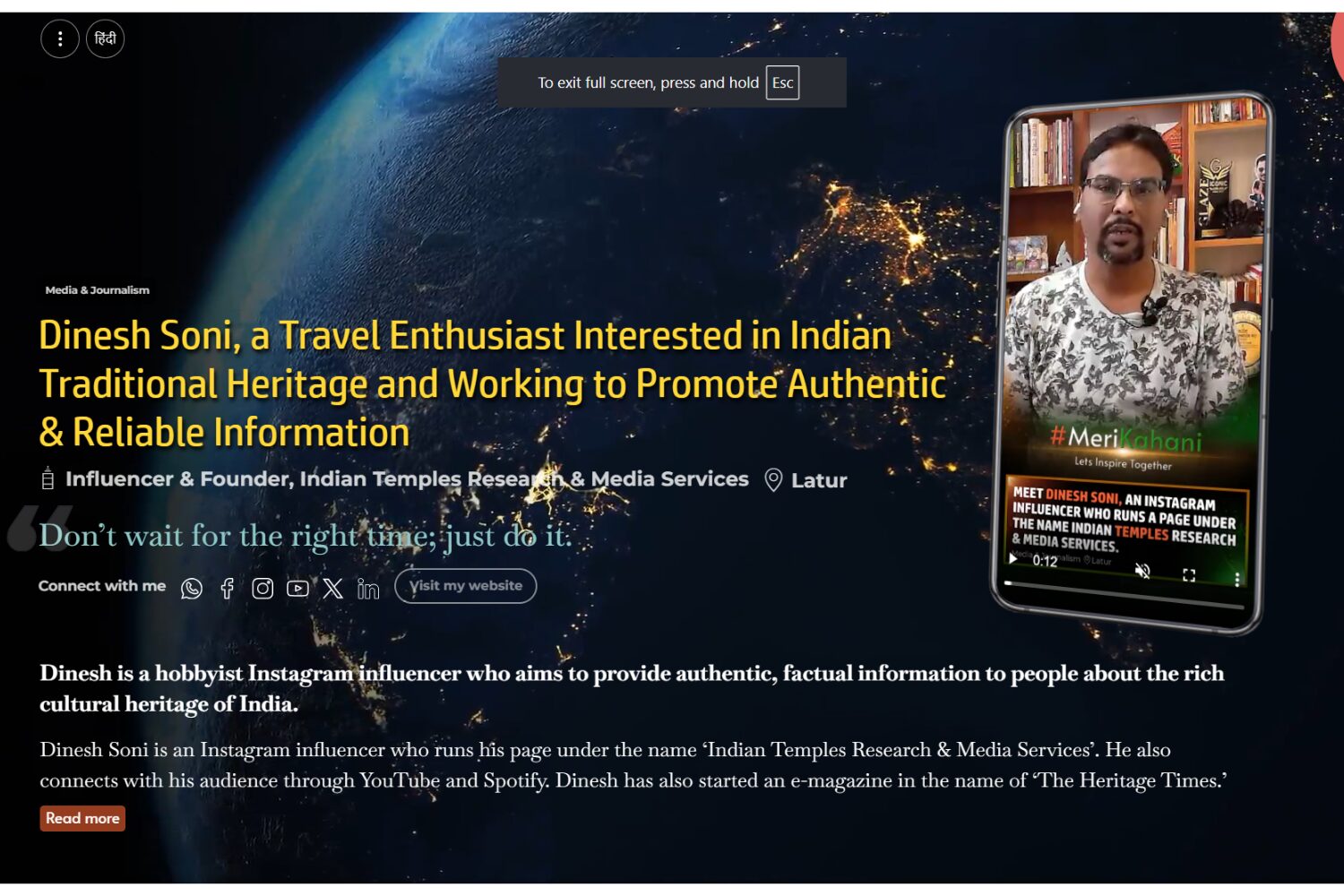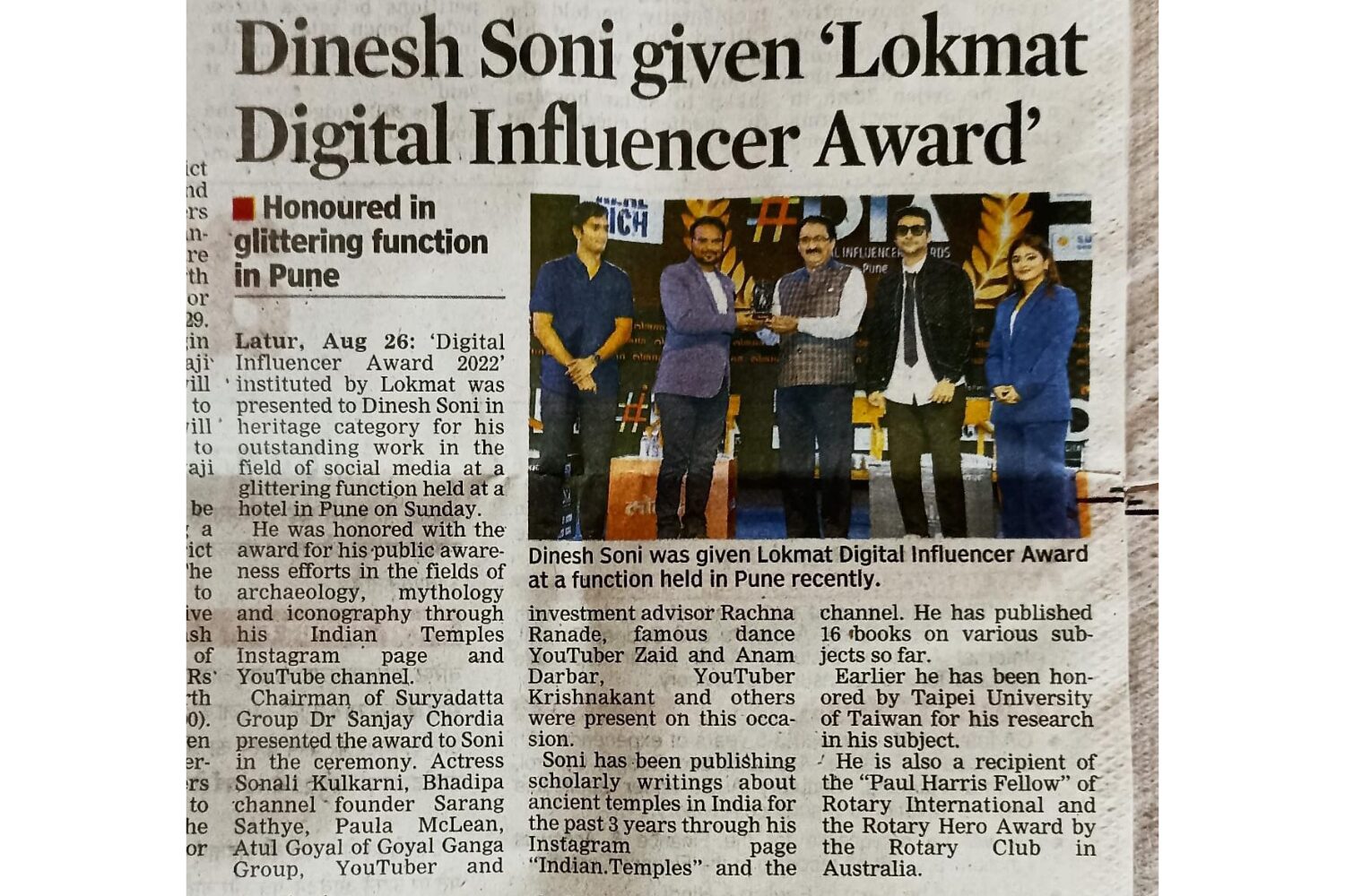 Dr. Dinesh Soni is a writer, speaker, and digital heritage influencer, and the founder of Indian.Temples Research & Media Services. A Doctorate in Cultural Studies, he is the author of 18 books and recipient of honors such as the Lokmat Digital Influencer Award (Heritage) and recognition from Academia Sinica, Taiwan. He regularly speaks on Indian heritage, culture, and tourism at national and international platforms.