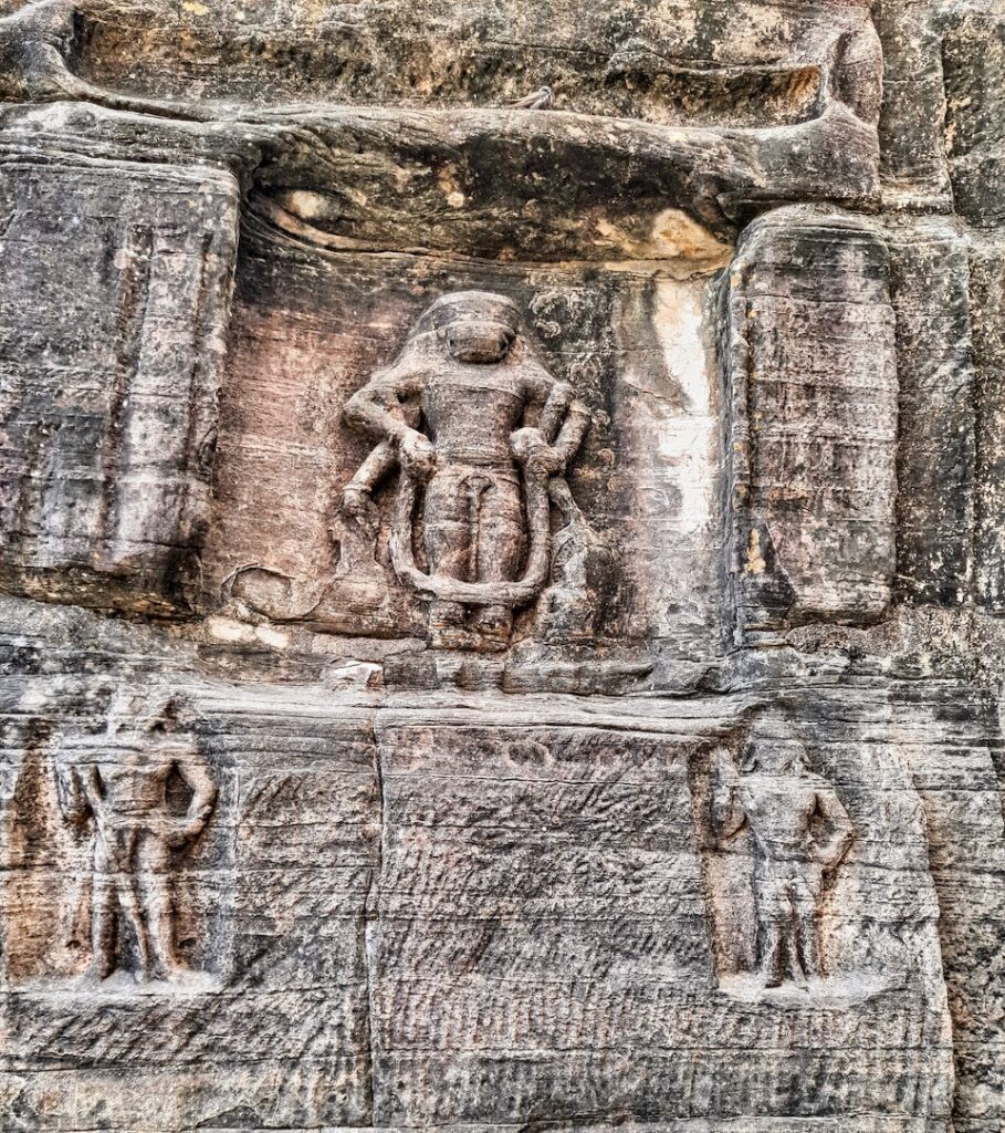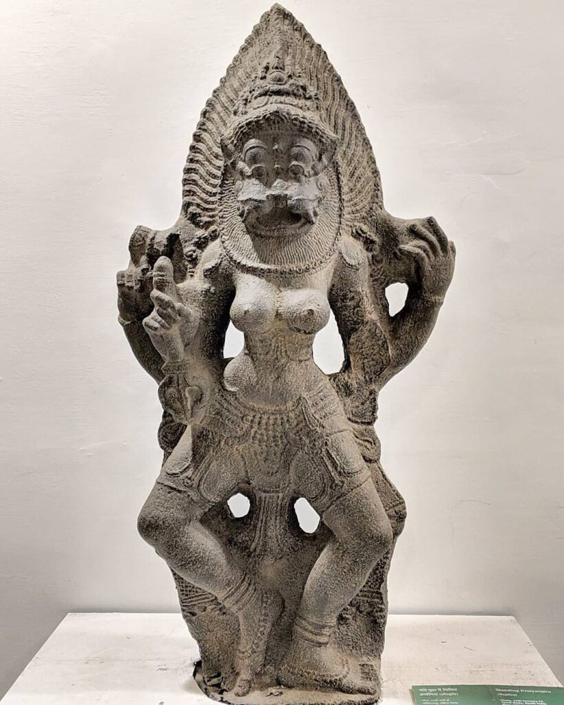 - Stylistic Signature: At Udayagiri Cave 12, the image is elemental. The transition from man to lion is subtle. There are no multiple arms, no complex garlands of entrails—just a powerful, two-armed figure with a lion’s head, radiating sheer physical might. It captures the Vīra (heroic) sentiment rather than the Raudra (furious).